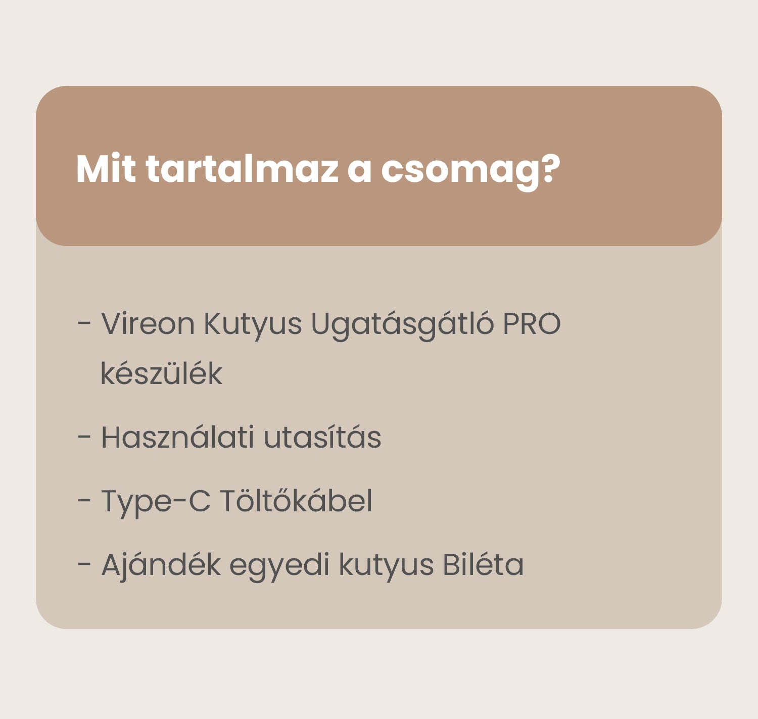 A Vireon Kutyus Ugatásgátló PRO-ra 100% elégedettségi garanciát, valamint 14 napos ingyenes visszaküldési lehetőséget vállalunk. Ha bármilyen problémája adódna a termékkel, kérjük, lépjen kapcsolatba ügyfélszolgálatunkkal.